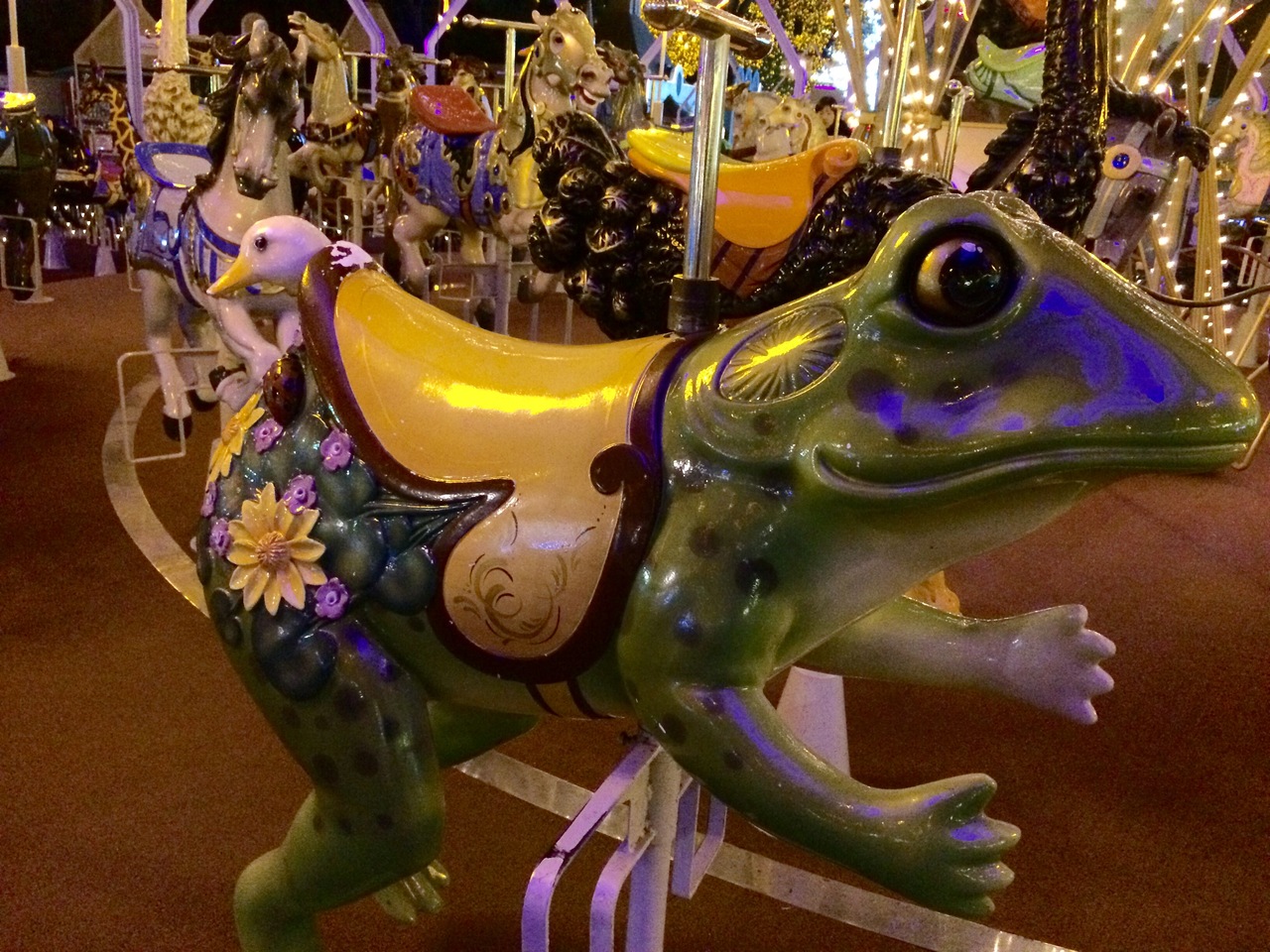 メリーゴーランドに乗り、馬以外にキリンやライオンにも乗れるというのはまだ想定内ですが、カエルもいたのは驚きでした。- 旅行時期
