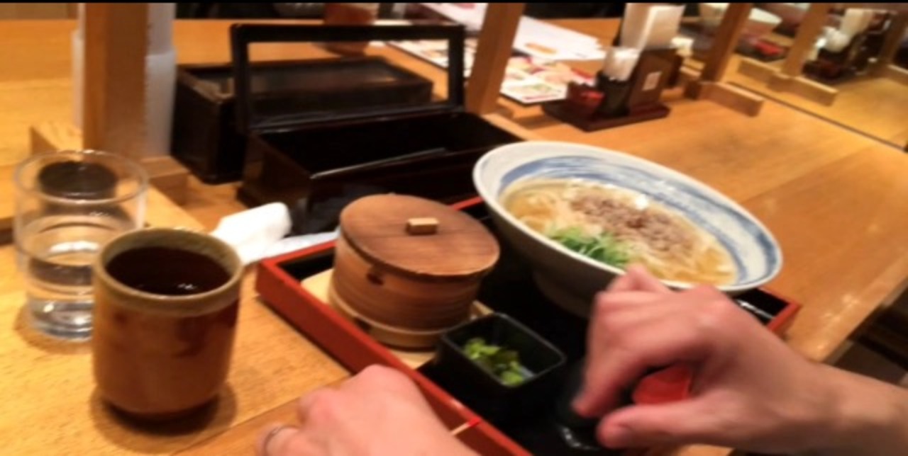 カレーうどんは麺がモチモチで、まあまあ辛かったです。(私は辛さに弱い方です)
