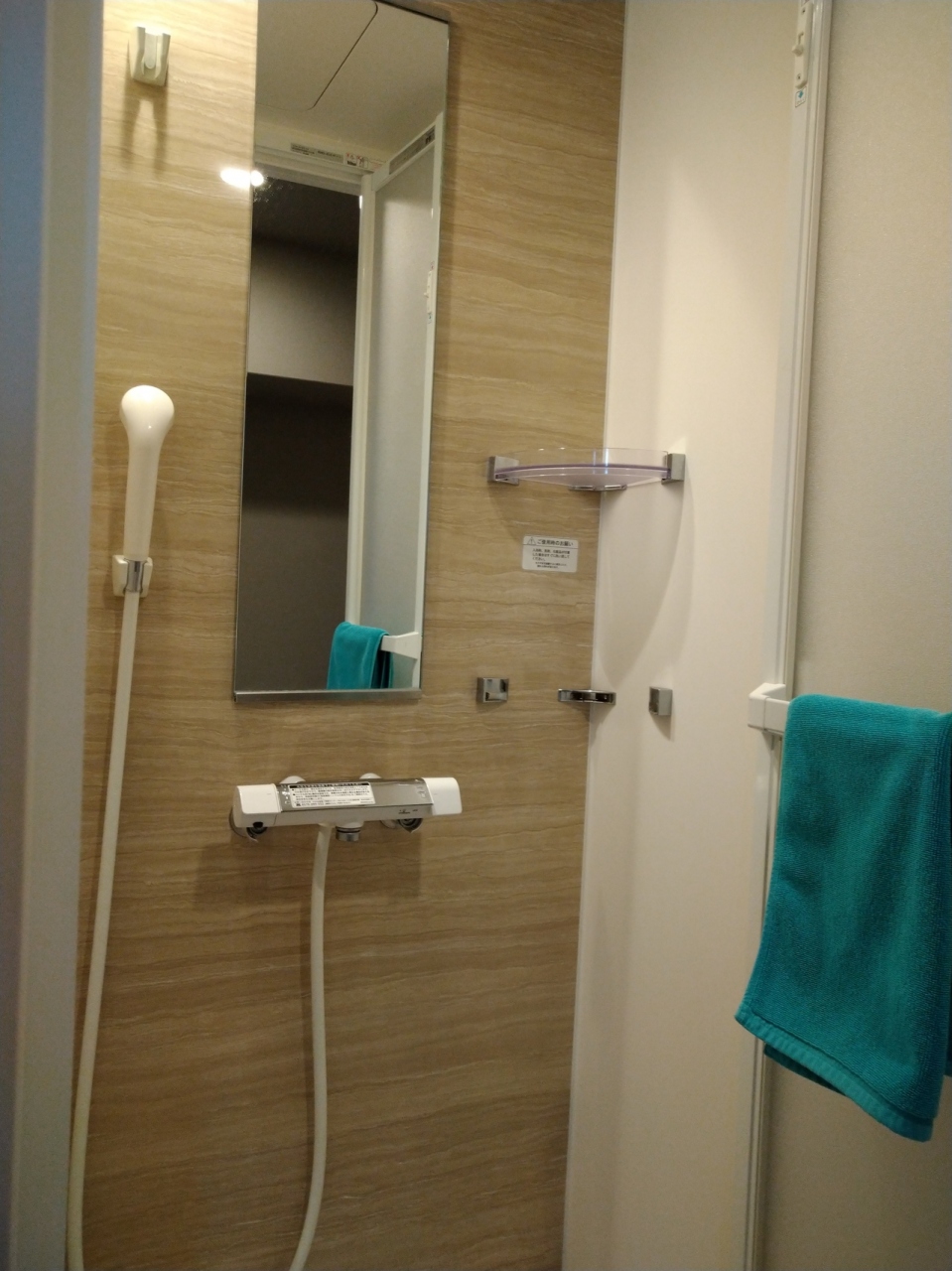 客室内は他のホテルとは違う間取りです。扉すぐに洗面台。奥にトイレの扉があり、その中にシャワー室がありました。(トイレとシャワー室は別々です)