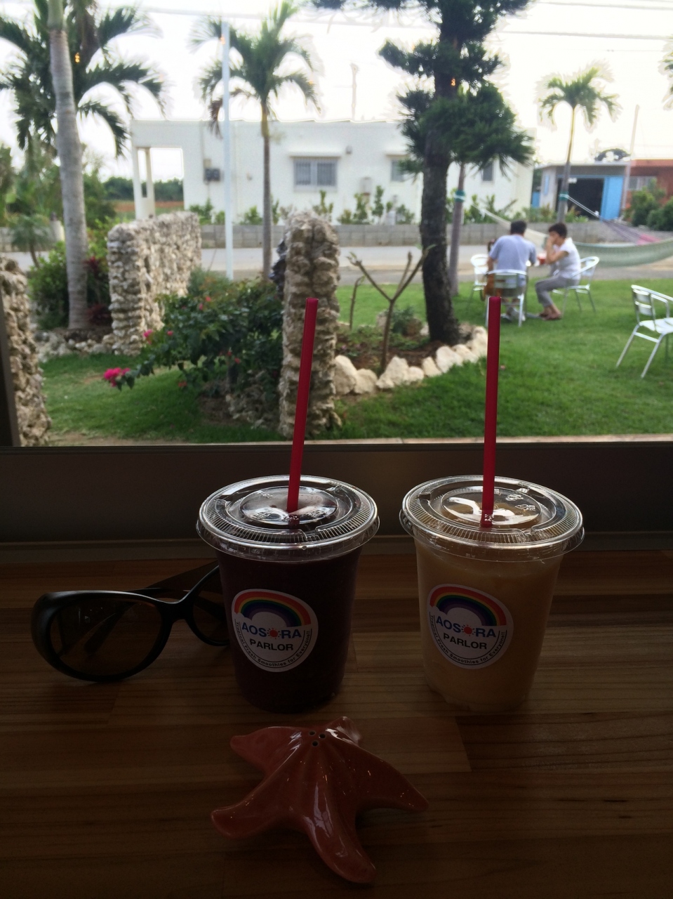 ここのスムージーを飲みたくて、自転車に乗って来間大橋を渡って行きました。