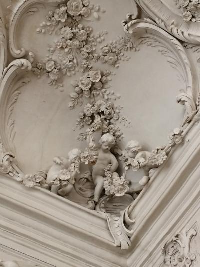 彫刻は色が白ですが、本当に素晴らしいです。天井には絵がありますが彫刻の方が存在感があるくらいです。