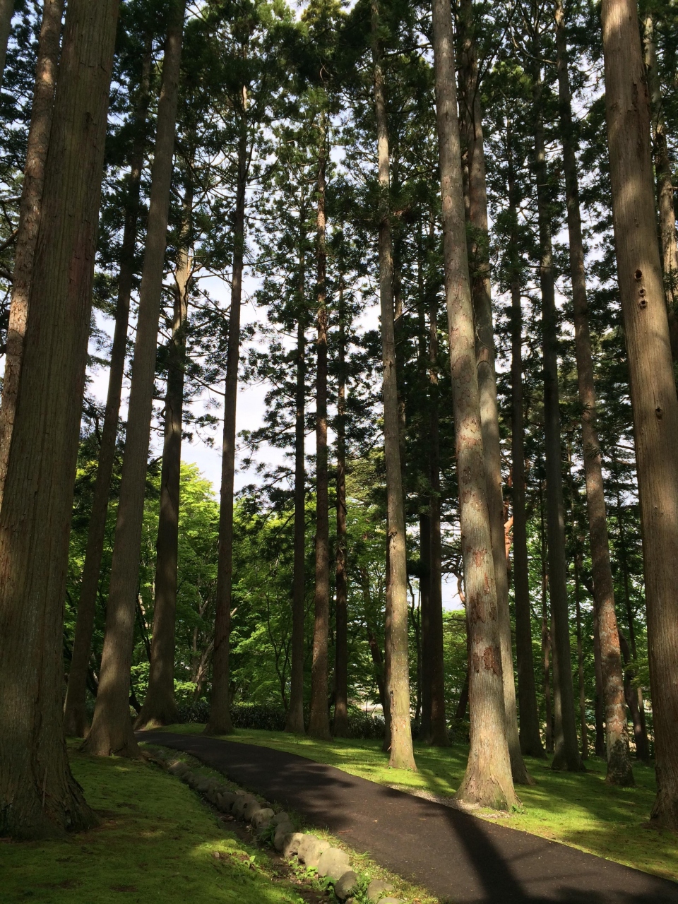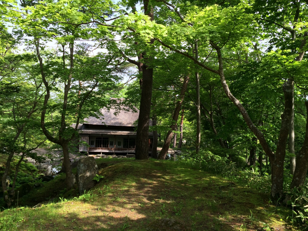 露天風呂からの景色は新緑の森って感じで癒されました。ライトアップも良かったし、朝もやの感じも良かったです。