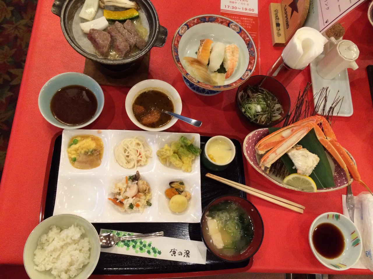 チェックインしたら、申し込んだプランで夕食のバイキングプランにプラスして、すしかにステーキ膳の用意もされていて、楽しみでした。 他のホテルの比べて時間制限が厳しいものの、なんとか時間内でも十分食べることができました。