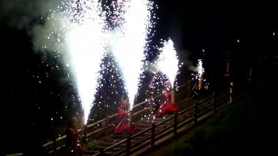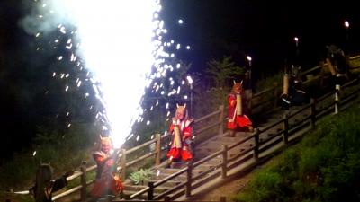 斜面に六人の鬼が花火を持っています。この花火がすごかった。