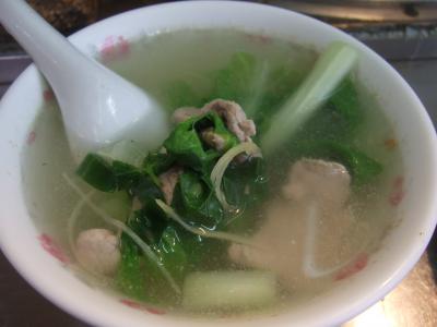 2種類のつみれが入った香丸湯(だと思う)65元、乾麺40元、燙青菜40元を注文しました。
