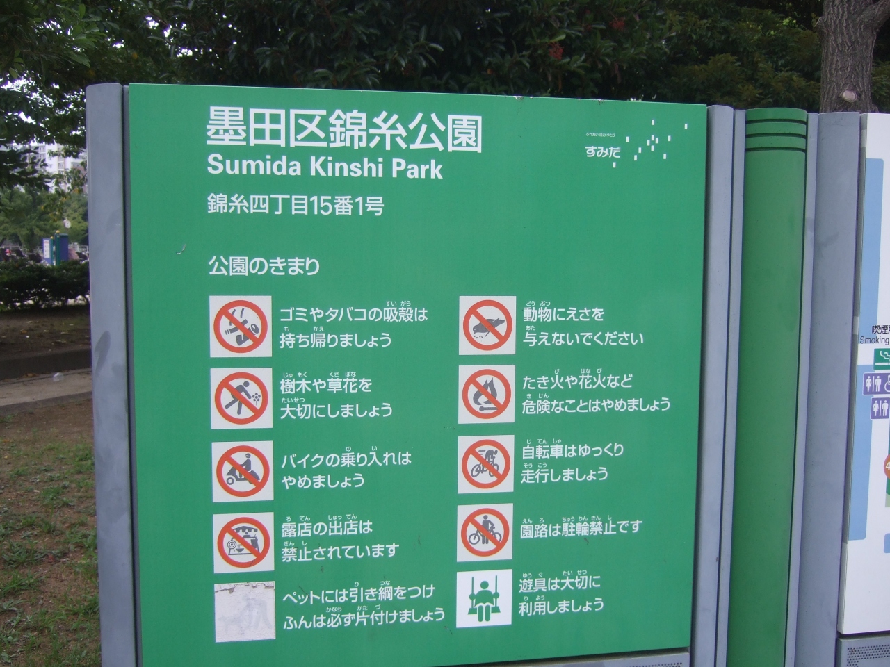 台風の強風で看板が直撃し、曲がってしまったポストです。移動の話も持ち上がりましたが、2018年7月現在も元の場所にありました。
