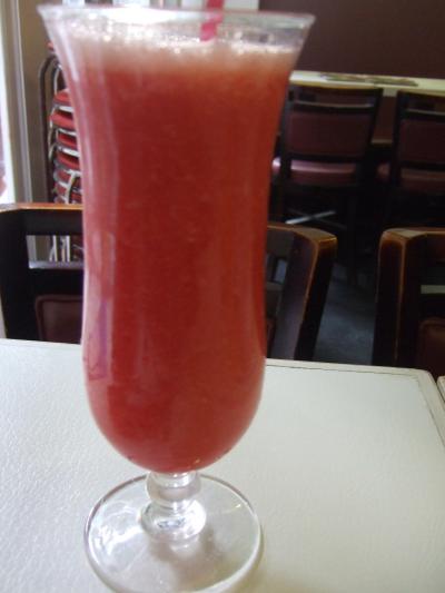 飲んだことがあるのはスイカジュース、ミカンジュース、アボカドミルク、タピオカミルクティーです。全部美味しかった。今回はイチゴと悩んだ結果、やっぱり夏はスイカでしょう!と思い、スイカジュースにしました。けっこう氷が入っていたのに、