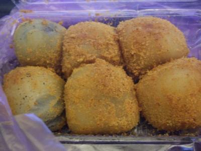 帰りの空港で食べようと思って購入しました。いつ通っても並んでますが、人数の割に早く順番が回ってくるので、たいしたことはありません。以前間違って入ってて、全種類制覇出来なかったので、今回は3種類を2個ずつ買いました。タロイモだけ中身が少なかったのが残念です。タロイモ好きなのに。けっこう大きめです。機内で何も食べずにすみました。やわらかくて、甘さ控えめだけどおいしいです。