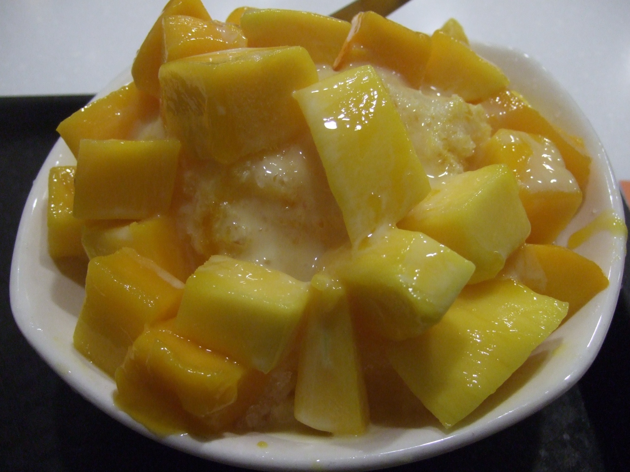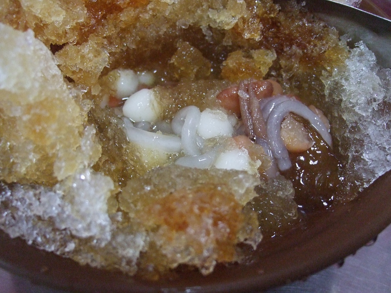 - 黒砂糖のシロップがかかってます。マンゴーはありません。トッピングの種類が豊富です。
