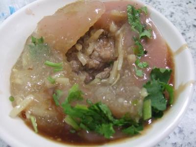 西門にある士林分店です。西門は立ち食いですが、ここは座って食べられます。けっこう広めです。豚の腸とパクチーが入ってます。パクチーは入れるかどうか聞かれます。