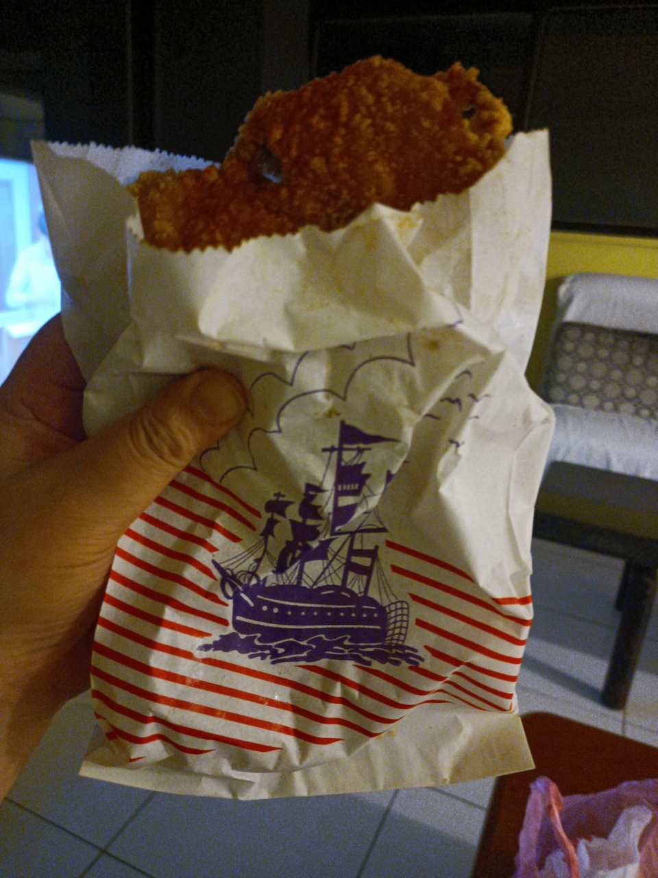 みんな買ってその場で食べてました。時間が経つと油が回ってくどくなります。