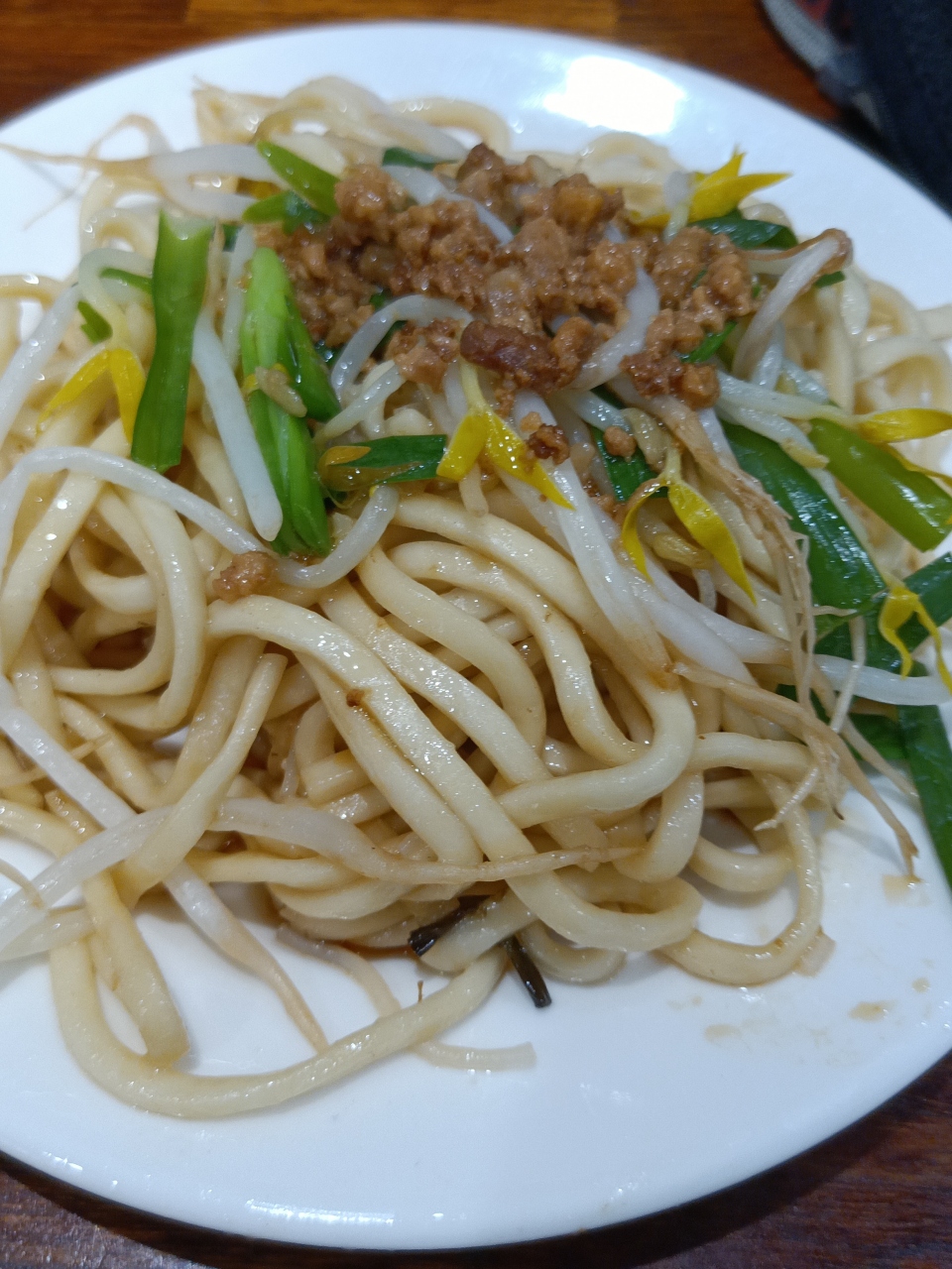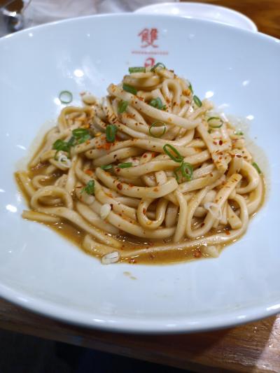 ラーメン二郎よりも太いうどんのような麺にたっぷりの肉みそがかかっていて、にんにくもきいてます。しっかりと混ぜてから食べましょう。