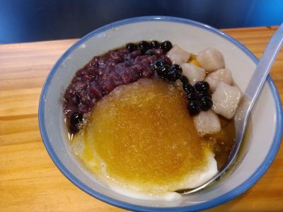 豆花がいまどき40元!トッピングは3種類できます。芋圓が旨い