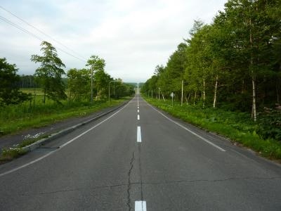 R237の美馬牛近くからわき道に入って行くとある、アップダウンのある直線道路です。