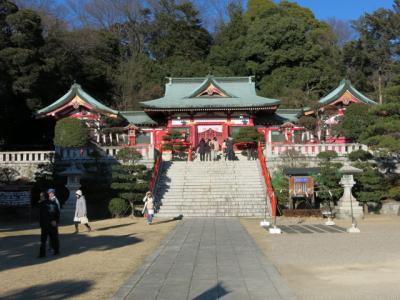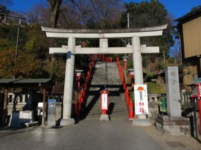 駅から少し離れた、小高い山の中腹にある神社で、朱塗りの本殿が目を引きます。