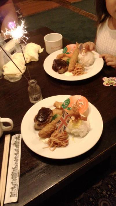 我々が行った時は9月のまだ暑い時期だったせいか、子供メニューを頼んだら花火が1本ずつついてきて、着火すると子供たちは大喜びでした。