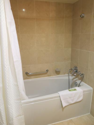 バスルームはスケスケのシャワールームと、日本のビジネスホテルによくあるような感じの風呂がありますが、バスタブの広さは日本よりだいぶ余裕があります。