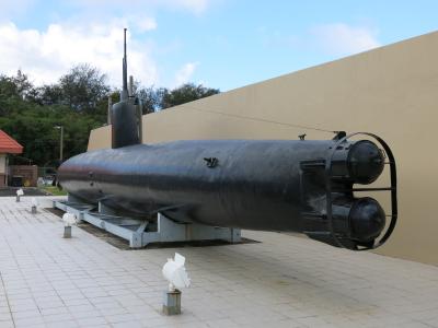 入口近くには黒く塗られた潜水艦が鎮座しています。