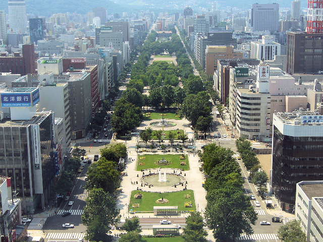 エレベーターで展望エリアに行くと大通公園を見下ろせ、なかなかの眺めです。
