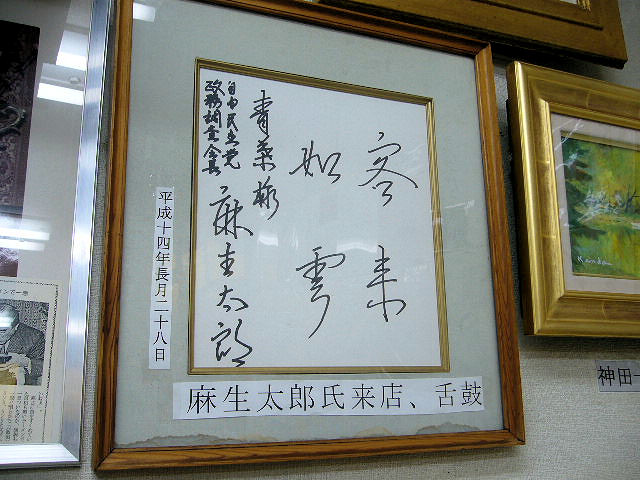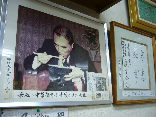 店内には青葉のラーメンを食べる中曽根元総理の写真や、自民党の麻生さんの色紙が飾られていました。麻生さん、すげー達筆です。- 旅行時期