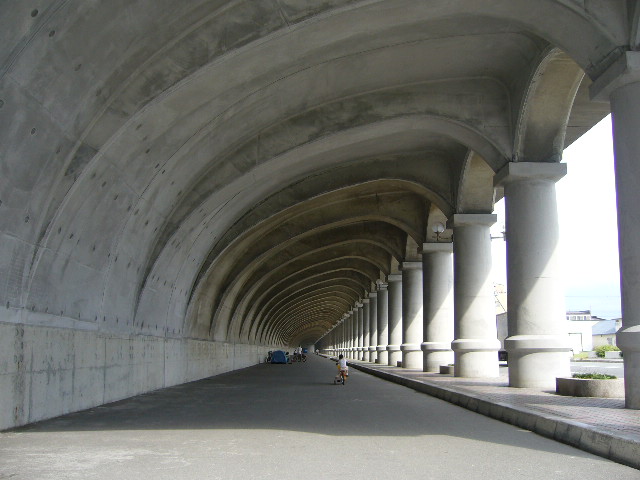 稚内駅の北の方にある、珍しいドーム状の防波堤です。