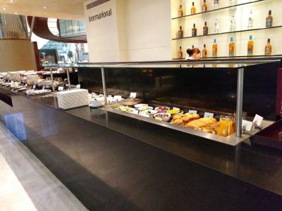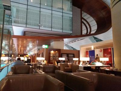 ドバイからの帰国便がこちら(コンコースA)出発だったことと、夜行便に備えてあらかじめ食事やシャワーを済ませておきたかったので、かなり早め(出発3時間以上前)にラウンジに到着しました。エミレーツ航空のメインとなるコンコースBに比べて出発便が少ないためか、ラウンジ内も空いていました。シャワーなどは、スタッフを探すのに手間取り、使い始めるまで時間を使ってしまったぐらいです。とはいえ、1フロアまるまる使ったラウンジなので、飲食スペースは各所にあり、それ以外にもくつろげるスペースが多いため、「寝ちゃったら、乗り遅れるんじゃなかろうか?」と思うほど静かでした。