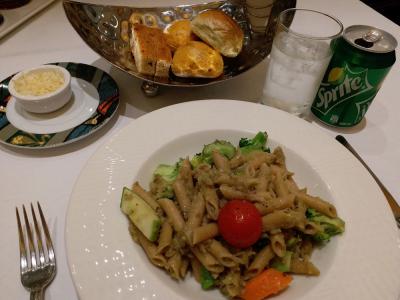 一番安いパスタ(っぽいもの)を食べましたが、ホテルの周りに店が少なく、中心部からも距離があるので、仕方がないかな?と思いつつ、食事をしました。。。- 旅行時期
