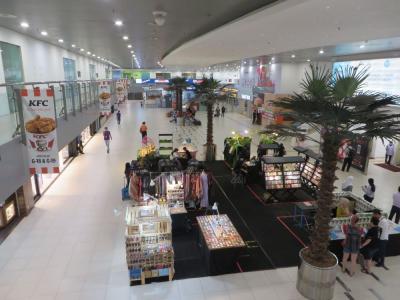 近くのホテルに滞在していたため、「昼飯を取れるところがないかな?」と歩いてやってきました。ワールドトレードセンターの高層ビルがある低層階がこのモールですが、期待していたほどの賑やか感はなく、レストランやカフェはちらほらあるものの、結局2階のスパー手前のフードコートで済ませました。「本屋(っぽいもの)はないかな?」「電器屋はないかな?」とうろちょろしたものの、そういった店は見つからず、平日の昼間ではあったのですが、「客よりスタッフの方が多い」ほど閑散としていました。