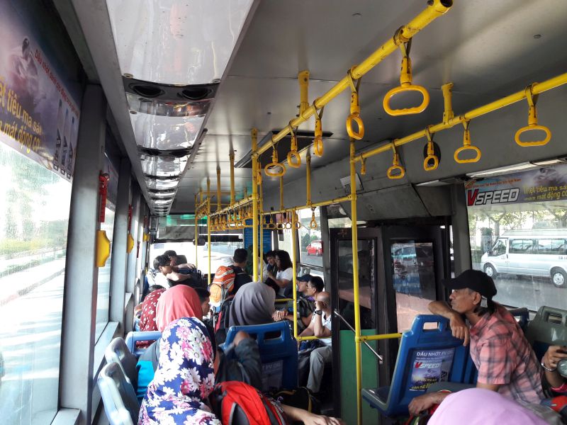 空港に向かうときにも利用しましたが、ベンタインバスターミナルには2つの「152番バス乗り場」があり、片方は空港行きですが、もう一つは別の場所に行くようでした。乗る前に、あらかじめ「エアポート?」と聞いておかなければ、別のところに連れていかれるところでした。