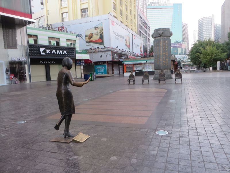 このエリアにある大型ショッピングセンター(カルフール)に来たつもりが、開店前でヒマだったので、ぶらぶらと歩いてみました。南北に連なる大通り、車道が地下に潜っているので、広々としています。道路に面して、ショッピングモールやカフェ、レストランがあるのはもちろんですが、路上にも常設の飲食店があり、オブジェなども並んでいます。・・・が、8時前なので、露店の類はどこも開いていませんでした。