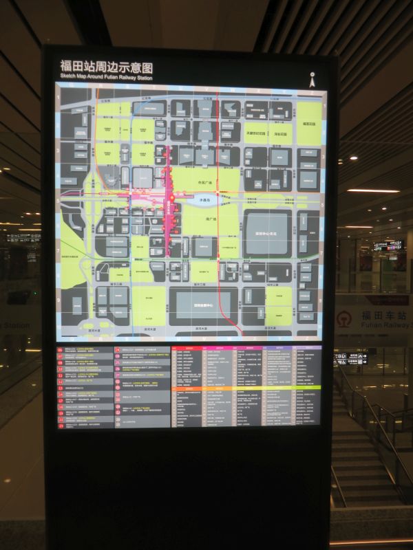 深セン市内中心部にあり、市政府などからも近い、鉄道駅(地下)や地下鉄などが集まる結節点でもあります。なお、香港との国境施設がある「福田口岸駅」からは離れており、地下鉄を利用しても乗り換えが必要です。