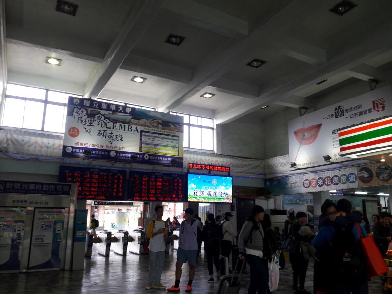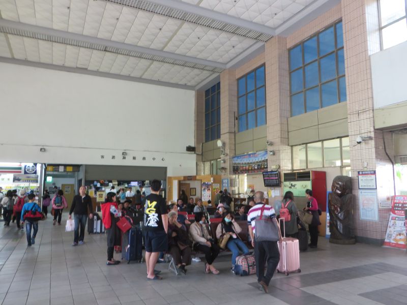高雄から東部を特急を乗り継ぎながら北上する途中、花連の街に立ち寄ったときに利用しました。特急の発着が多く、プラットフォームは広いのですが、線路東側にある駅舎に収まりきらないほどの客がいます。しかもそのうえ、新しい駅舎を作っている途中で、さらに狭さに拍車をかけていたような感じです。