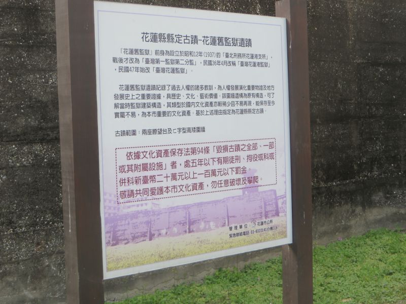 花蓮の市街地を散歩中、この広場のそばを通りました。普通の公園・広場にしては、場違いなオブジェがあるな・・・と思っていましたが、やはり監獄の跡地ということでした。