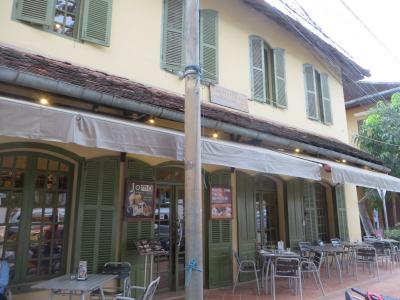 ゲストハウス街入口の目印として、バスやタクシーの出発到着地として使われている(・・・と、この近くで旅館を経営している日本人の方に聞いたのですが・・・)パン屋のようなカフェです。通りに面したオープンテラスもありますが、冷房の効いた屋内にも席があります。コーヒーやフルーツジュースとともに、パンもあり、屋台の地元料理ほどではないですが、安く食事にありつけることができます。