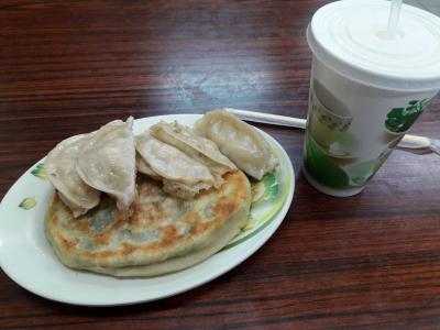 ネギかニラが入ったパンケーキ(おそらく「葱油餅」)と、皮の分厚い餃子、それと豆乳(・・・のようなもの)を注文して、60NT$だったので、その辺のコンビニやファストフードよりもコストパフォーマンスがいいかもしれません。- 旅行時期