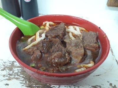 日本人とわかり、手渡された日本語のメニューから、「牛肉拉麺(小)」(140NT$)を注文しましたが、かなりのボリュームでふつうのラーメン、あるいは大盛り程度のサイズでした。分厚く大きい牛肉が乗っているうえ、麺が太麺なので、余計にそのボリュームがお腹に堪えます。ただ、見た目の赤さとは違い、意外とあっさりしているので、時間をかければ全部平らげることができました。
