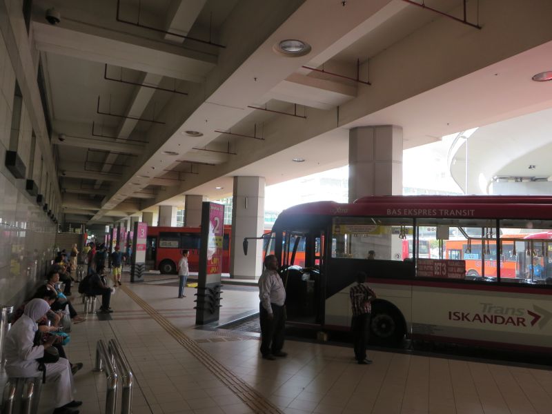 駅と、出入境施設のあいだ(駅の東隣)の地平にはバスターミナル(JB Sentral)があり、セナイ国際空港へのバスが発着しています。