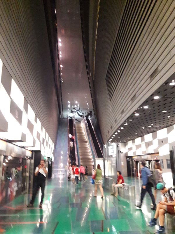 シンガポールとの出入境施設から、市街地へ出るために、エスカレーターなどを使って進んでいる途中に、駅施設(コンコース)を通過します。ただ、鉄道の利便性は高くないので、駅としての機能はあまり大きくないようです。