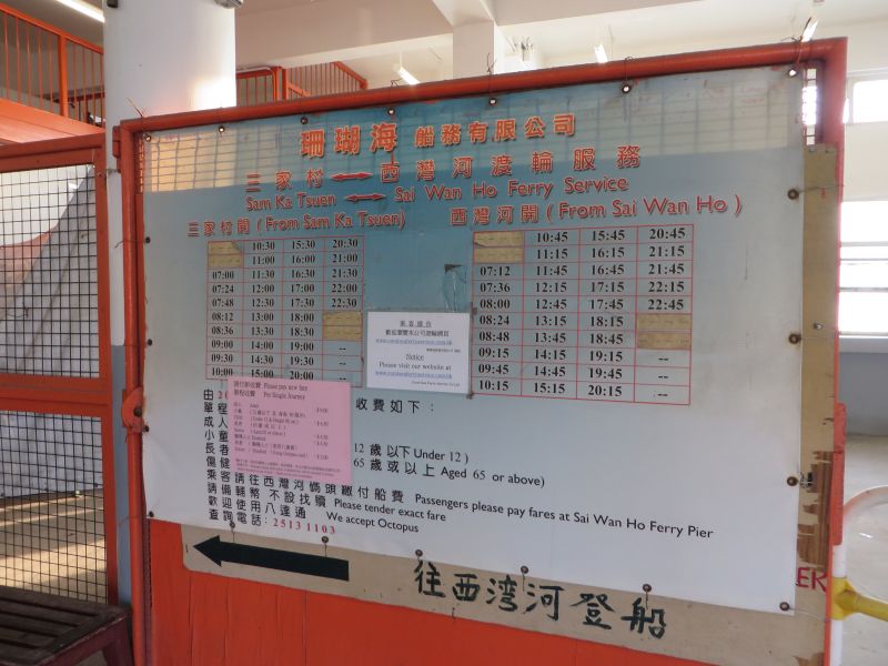 最寄りの駅(西湾河)や、トラムの停留所からは、ひたすら海に向かって500m程歩かなくてはならない距離にありますが、あちこちに案内表示が出ているので、迷いにくいかと思います。対岸の鯉魚門行きだけでなく、観塘行きや、週末には東龍洲行きも出ていますが、やはり便数が多くなく客も少ないためか、ターミナルとしてはこじんまりとしています。- 旅行時期