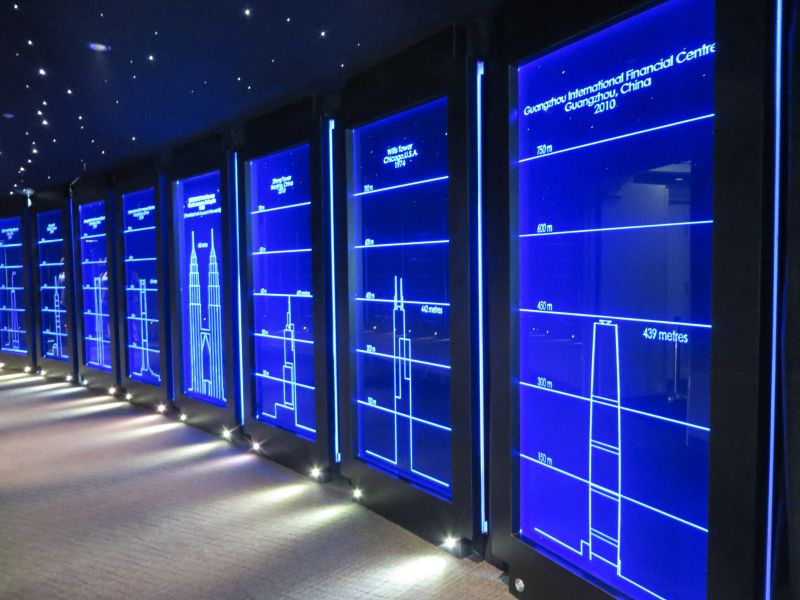 入場は、15分ごとのグループに分けられていて、それぞれ(私たちの時間は十数人程度の)3グループに色分けされたネックストラップをかけました。そのグループに分かれてエレベーターに乗り、スカイブリッジ、展望台へと案内されます。それぞれの見学時間に差はありませんが、少しでも早いグループに入ったほうが、見学するときに空いている時間が長いのでお勧めです。- 旅行時期
