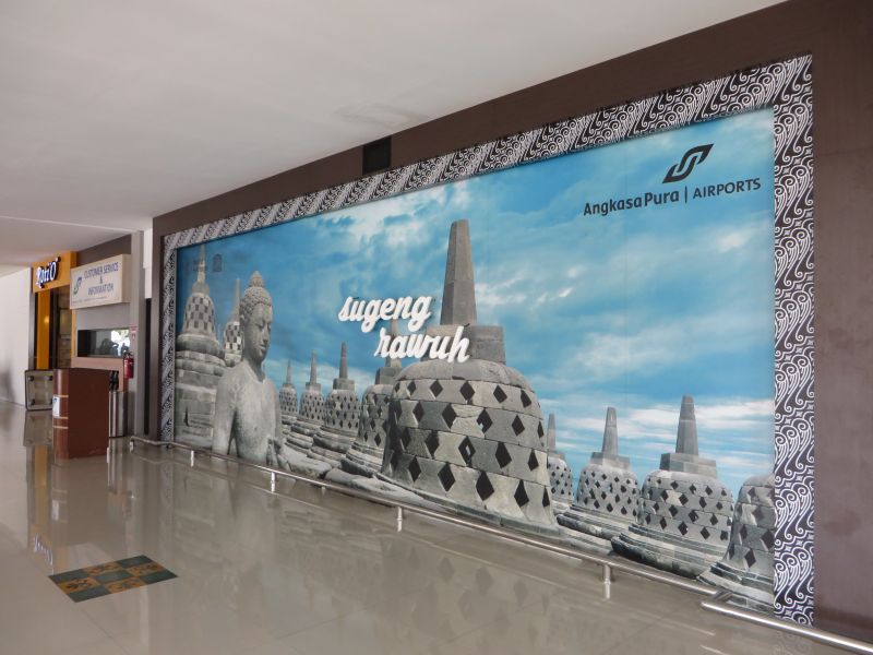 ジャカルタからの国内線で、19時過ぎに到着しました。バス(トランスジョグジャ)での移動も検討していましたが、急ぐ必要があったのでタクシーを利用しました。荷物受取ターンテーブルの前に、いくつかのタクシーカウンターがあり、行先のホテル(あるいは有名な施設)を指定するとそこまでの運賃が書かれた表がありました(マリオボロ通り近くのホテルまで、150,000R)。支払いを済ませ、引き換え票をもらい、制限エリアを抜けたところでドライバーさんと落ち合うというシステムでした。大きな荷物がある、複数人での利用、初めて到着したときなどは便利かもしれません・・・が、やはりバスに比べると高いです。