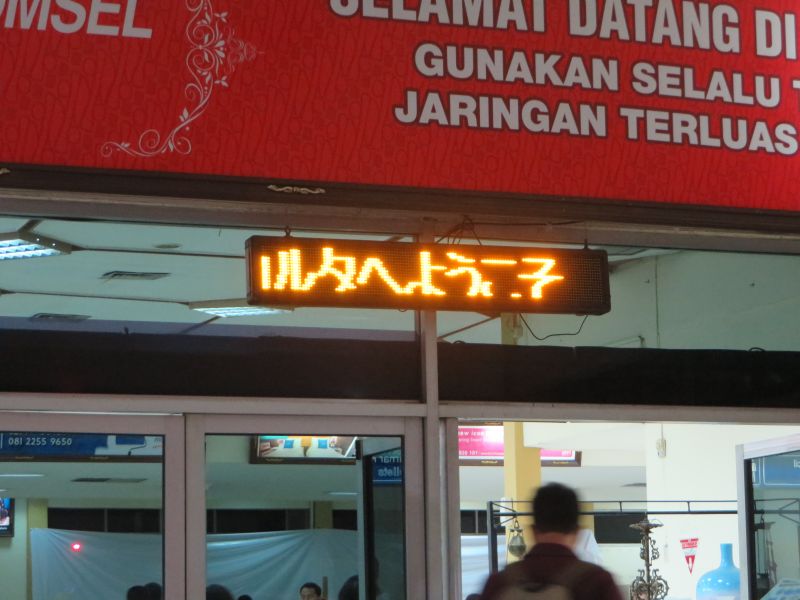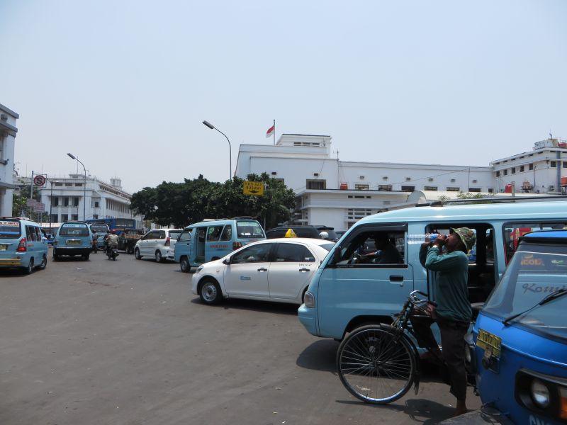 普段はタクシーを利用することはないのですが、とある理由(別記)により「ガンビル」のバスターミナル近くから、「コタ駅」まで往復(それぞれ別のタクシー)を利用しました。往路は、こちらが慌てているのを察したのか、なぜか気さくに観光案内をしたり、知っている日本の歌をカーラジカセから流したり、持っていたガイドブック(歩き方)を取り上げて地方のページの写真を見てはしゃいだりしていました(ある意味、迷惑)。そこそこ英語で会話が成立しますし、乱暴な運転や回り道をするなど怪しい行為もなく、普通に送り届けてもらえました。メーターでは3万ルピア代後半でしたが、お釣りをもらっているヒマももったいなかったのもあり、40,000ルピア払いました。・・・これが相場かどうかは分かりませんが。