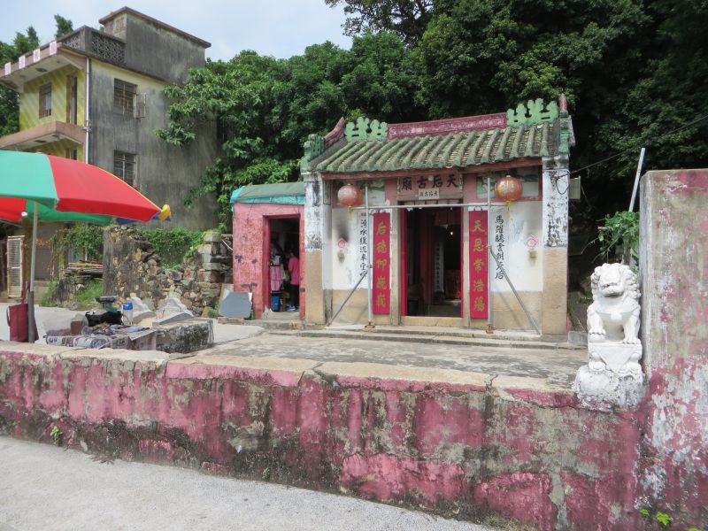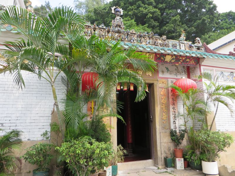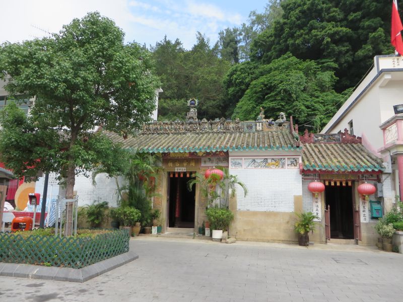 バスターミナルなどから、跳ね橋を渡った先の右手にあります。いたるところに案内表示がありますし、廟の前に広場があるのでわかりやすいと思います。大澳のほかの廟(洪聖古廟など)と比べると、中心部にあるので行きやすいですが、街中にあるため狭いというか窮屈な感じもします。廟前市(かどうかは分かりませんが)には、オープンテラスの食堂などがあり、その辺も含めて「香港(の田舎)らしいなぁ」と感じられる場所です。