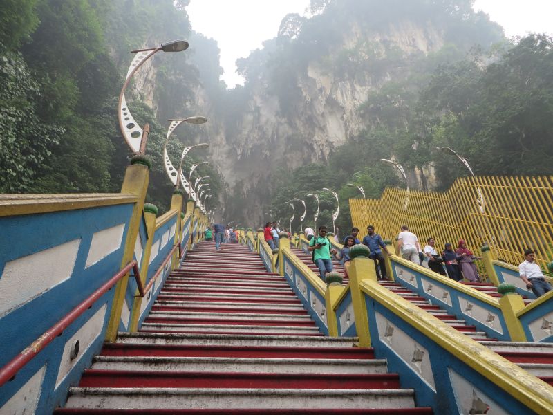 バツー洞窟の見どころといえば、「長い階段」だけだと思っていました。確かに、階段もすごいのですが、その途中にある洞窟探検(Dark Cave)や、のぼりきった先に広がる巨大な空間と宗教施設、さらにその先に階段と、なかなか盛りだくさんのスポットです。