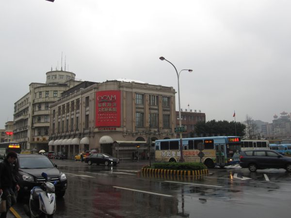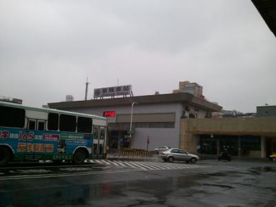 台北市内から、各駅停車で約1時間。「アクセスが便利そうだから」と来たものの、到着直前から、雨、雨、雨。かつては船と連絡していたというだけあって、港のそばの古い駅舎は趣がありながらも、パン屋、コンビニなど、人が集まる「駅」としての施設としての施設は揃えている様子。駅前のロータリー近辺にも、古くからの重厚な建物が集まり、埠頭までの散策には便利なものの、やはり「雨」というだけあって、観光をするモチベーションは上がらず・・・。