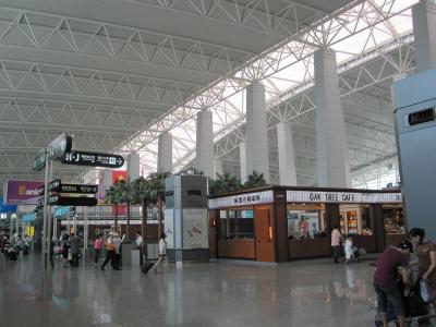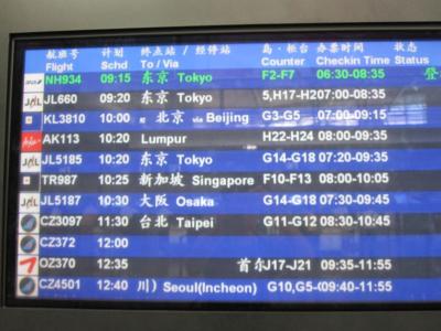 市内中心部のホテル(広州賓館)から空港への直行バスが出ていたので、前の晩に予約。渋滞に巻き込まれることも想定して早めにバスに乗ったのに、日曜日の朝だったからなのか、30分足らずで空港に到着。おかげで、チェックインすら始まっておらず・・・。地下鉄が直結して、少しは便利になったのでしょうか。