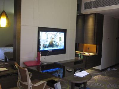 香港でのホテルを決めきれないまま1週間を切り、しかも急遽「3連泊」することになったため、空きのある宿が確保できなくなる中、「そこそこの値段で、何となく名前を聞いたことあるホテルチェーン」の宿。「1泊あたり2~3000円高いだけで、かろうじてバス・トイレが別になっただけの雑居ビルの中の旅館よりはいいかな~」と思っていたのに、到着してみるとあまりのギャップにビックリ。角部屋のため、客室の形状はイビツでしたが、ベッドは広く、オフィススペースも十分、クローゼットを抜けると、洗面スペースとバスタブ。ドアの奥には、トイレとなぜかシャワールーム。(香港のホテルにしては)広すぎて、空間を持て余す感じでした(・・・実際、「トイレが遠く」て困った)。