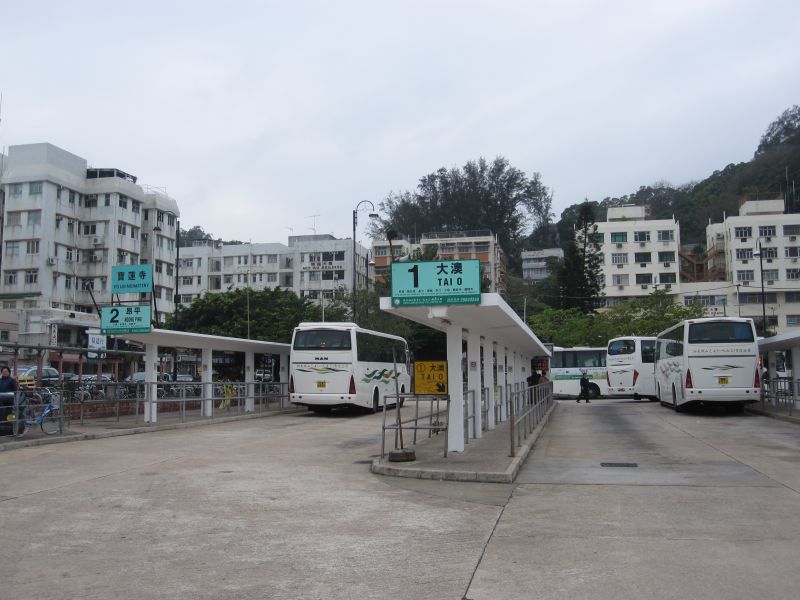中環のフェリーピアからの船が着くところ。埠頭の前には、ランタオ島各地へ向かうバス乗り場。東涌までMRTが通じている現在では、ちょっと寂れた感があるこの広場も、やはり船が到着した直後はバスに乗り換える観光客でにぎわって・・・。