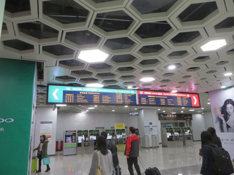 初めて使う空港だったので、「7時半ごろには着いておこう」と思い、深セン市内のホテルを6時前には出たのですが、始発電車が6時半からと遅いので、7時半前の到着となりました。それより早い便を利用する場合は、他の方法を考えないといけないかもしれません。