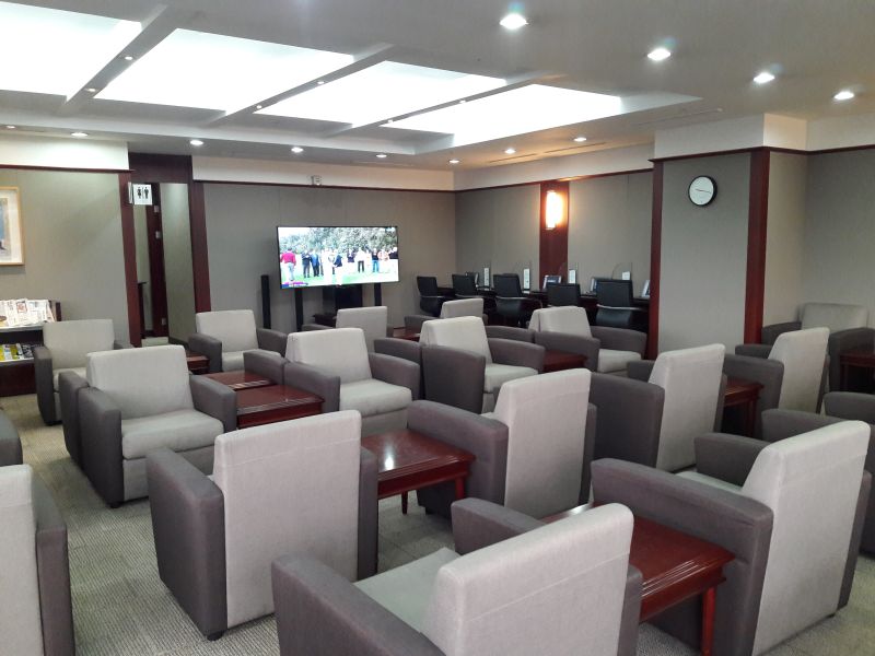 7時過ぎという早すぎる到着だったため、自動チェックイン機で発券だけ済ませ、1フロア上にあったこのラウンジに来てみました。ソファが多く、広々とした明るいスペースですが、食事は軽食というよりもお菓子程度しかなく、シャワーといった施設もありませんでした。